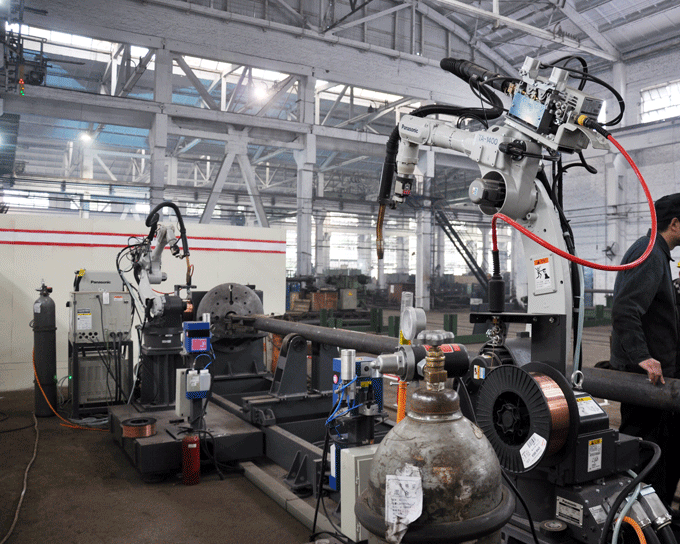 為確保塔機產(chǎn)品的工藝質(zhì)量,提高生產(chǎn)效率,集團公司進(jìn)一步加大技改投資,近日,又一套用于塔機標(biāo)準(zhǔn)節(jié)的焊接機器人系統(tǒng),投入使用。